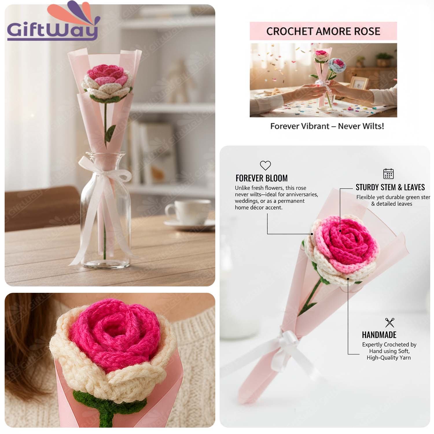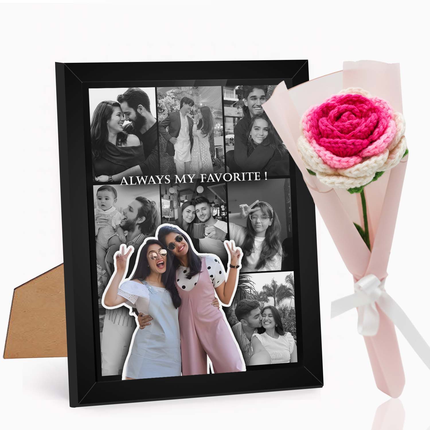 • Create lasting memories with this 8-photo collage frame that includes a handmade crochet rose, making it a thoughtful photo frame for best friend and a sentimental keepsake gift.