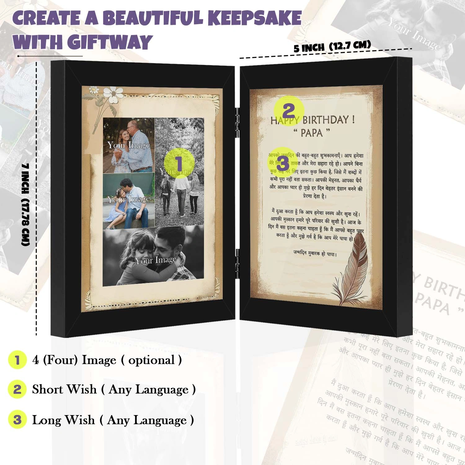 • A thoughtful and elegant birthday gift for papa, crafted to show appreciation, respect, and love through personalised wishes written in any preferred language.