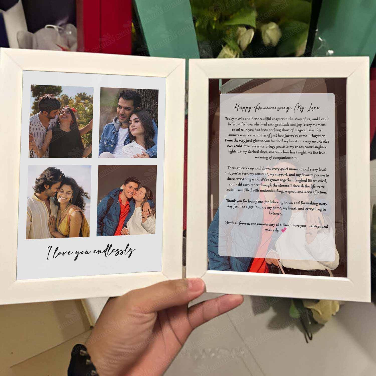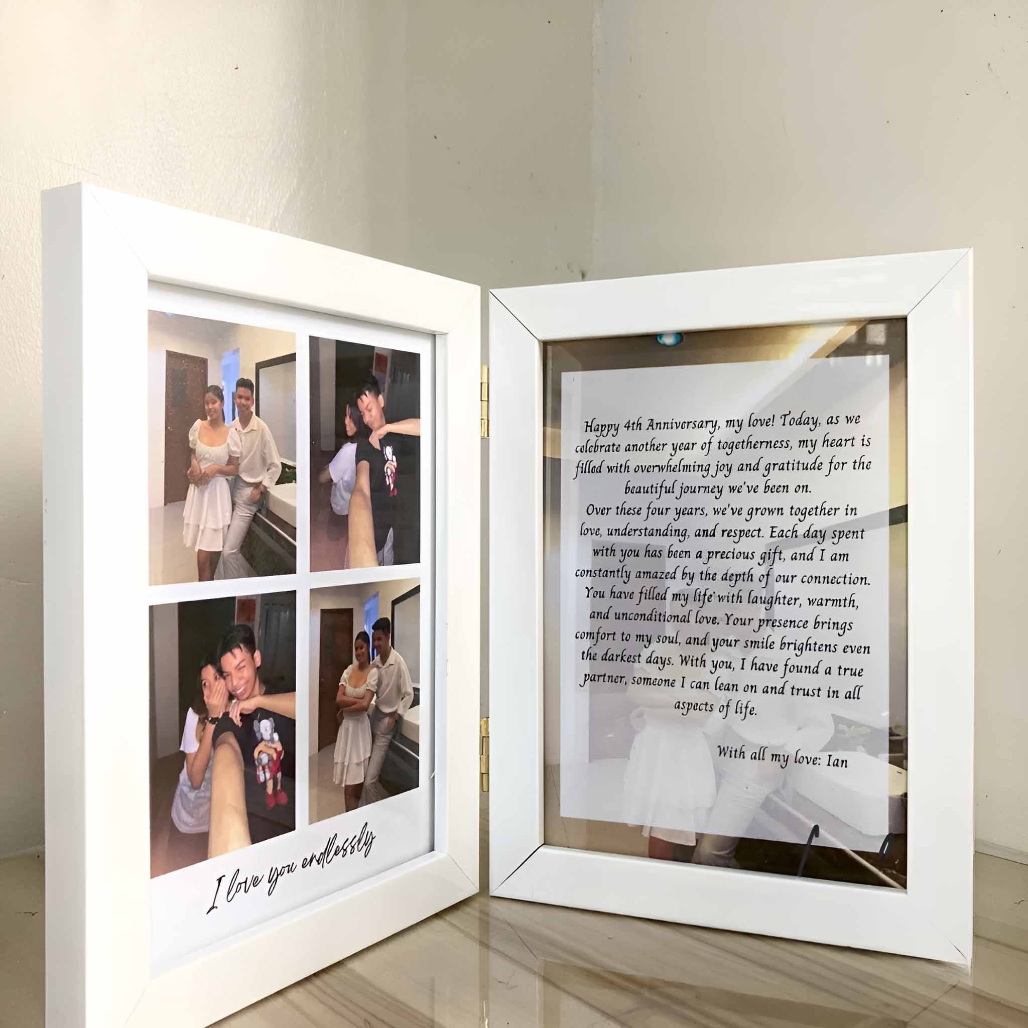 • One of the best gifts for wedding anniversary, this double hinged folding frame adds a sentimental touch to any room, making it a lasting keepsake.