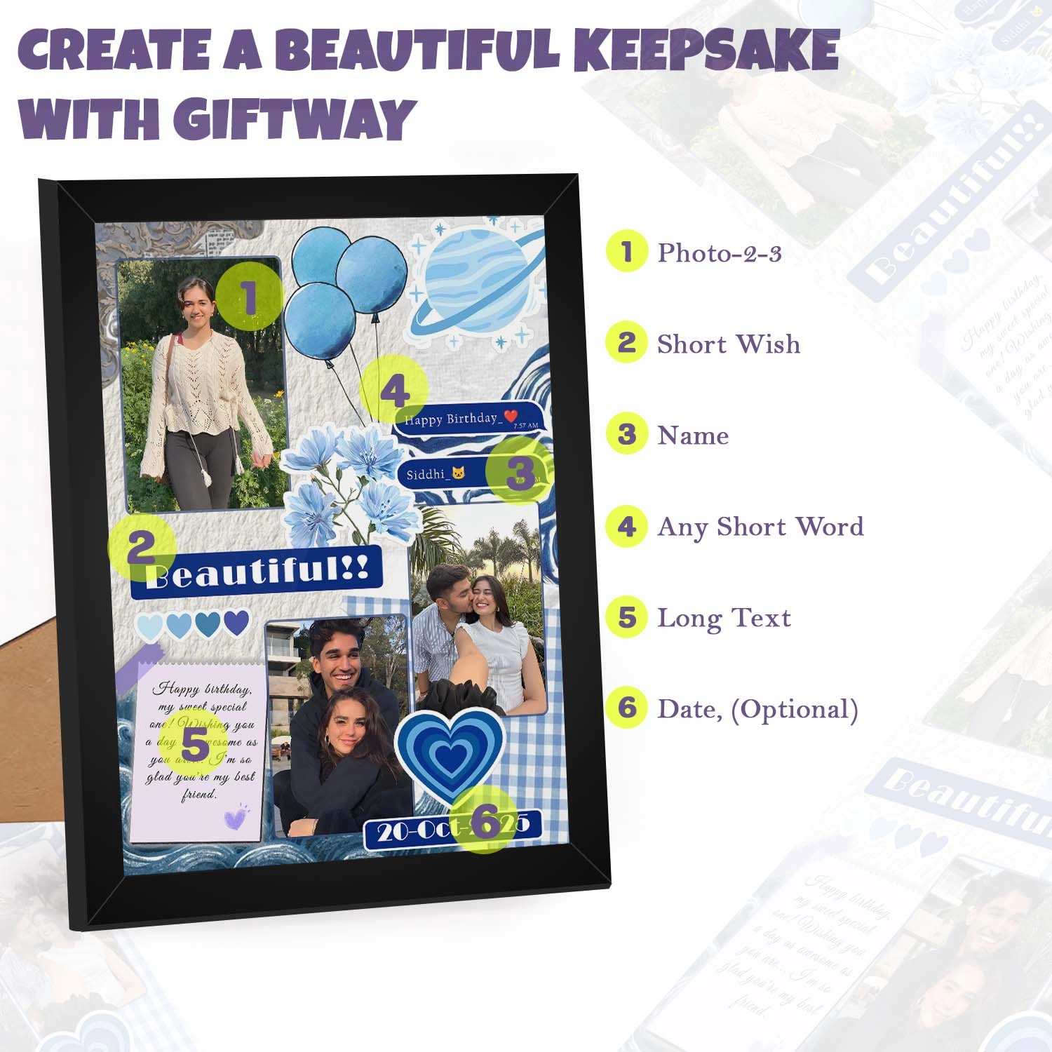 • A thoughtful choice for creating emotional memories, this frame works beautifully as gift ideas for husband’s birthday, helping you express warmth through personalised photos and a heartfelt message.