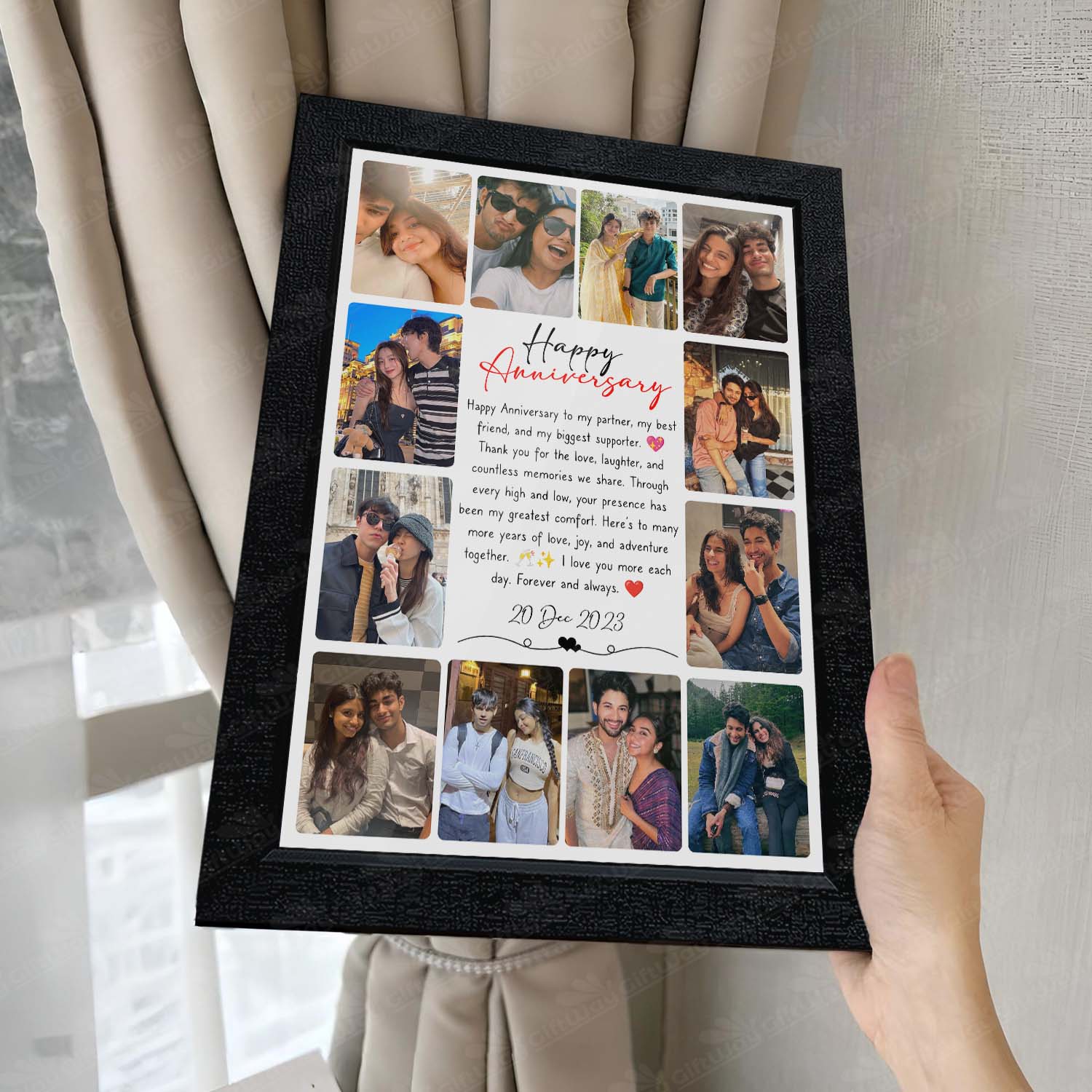 • Customised for Love: Create a personalised photo frame with 12 images and special text to celebrate your anniversary.